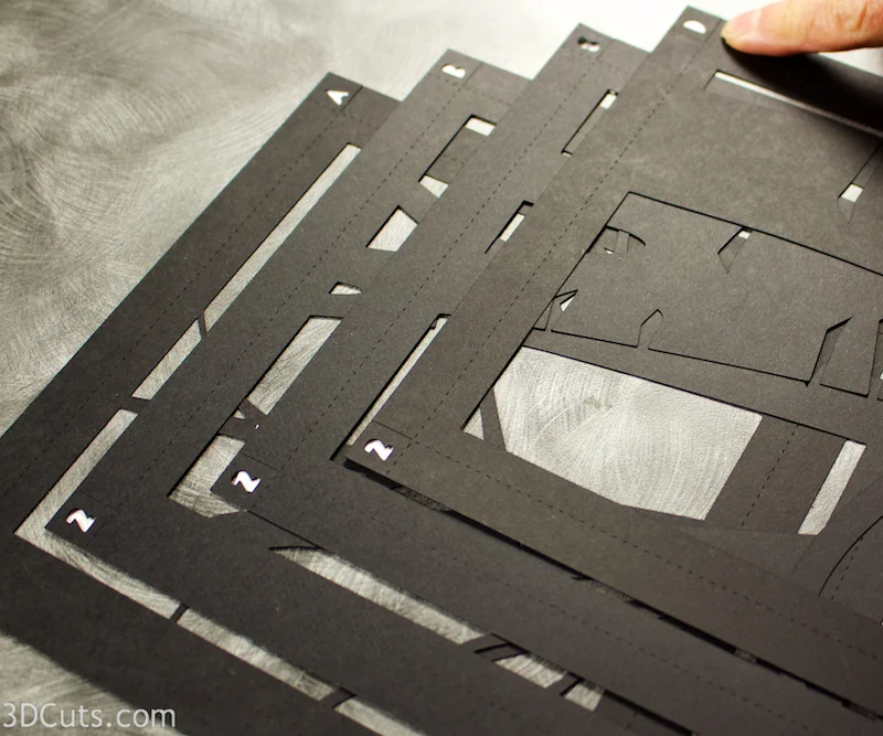 - Notice there is a cut-out number in one corner of each frame and a letter in some of the others. Use these as a guide. It will help in identifying the layers, identifying front or back, and knowing which corner should be in the upper left.