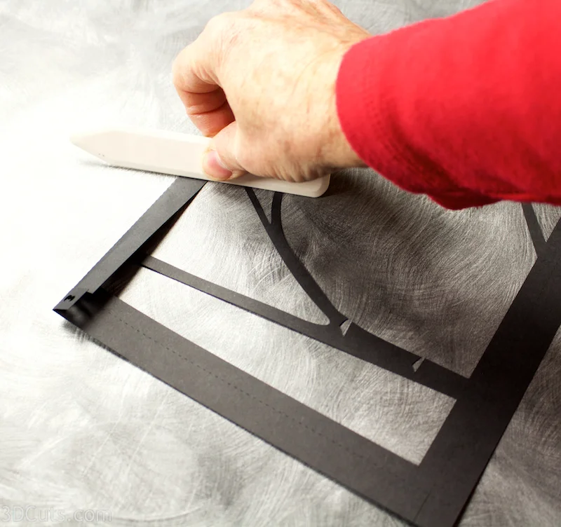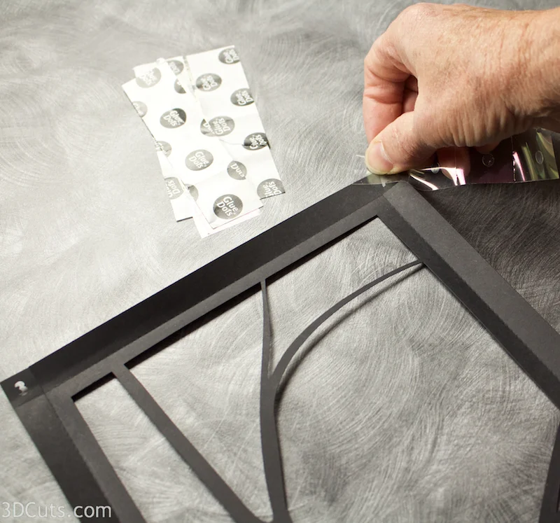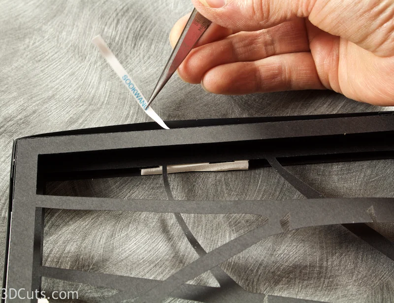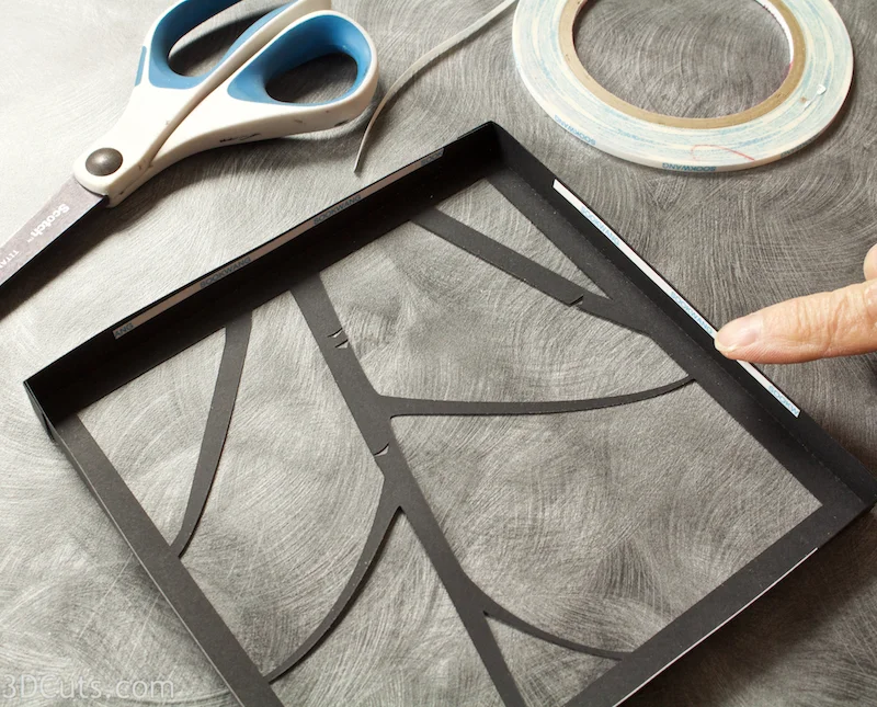 - Turn the frame over and reach in between the layers. Peel off the covering of the score tape, one side at a time, and glue each side of the layers together.
