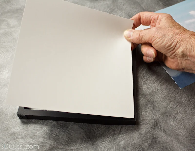 - If you would like to add optional backing paper to your shadow box, choose an appropriate paper and cut 4 squares 6.25" x 6.25".
