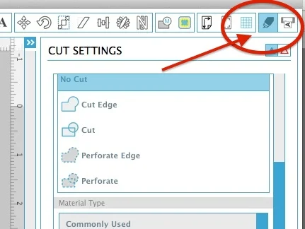 4. Select your material type (cardstock) and scroll down near the bottom of the Cut Settings box and locate the Line Segment Overcut setting. Default setting is OFF.