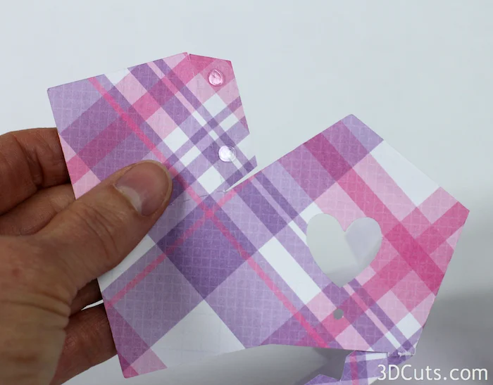 Once the front and roof are in place, apply glue dots to the remaining tabs for the back side. Carefully position the back and use a skinny tool inserted in the entry hole to press them into place.