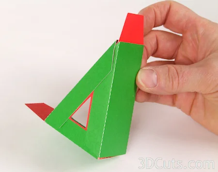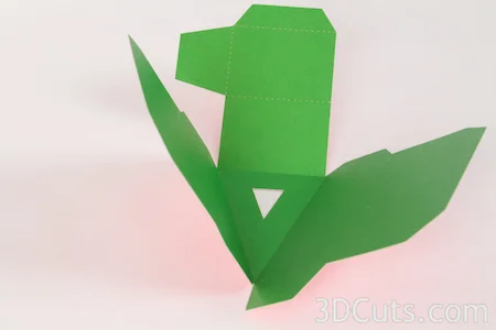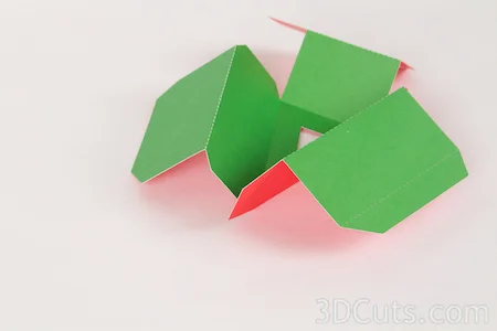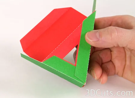 - Fold up the 3 small end tabs up (Image 5 - two shown in red and one in green). Fold on lines 10-11-12 in diagram.