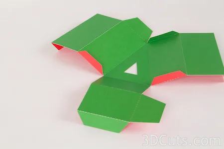 - Use hot glue or Score Tape to glue the 3 side seams together to form the base of the triangle box.