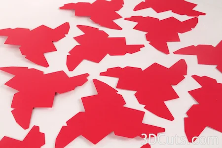 - Cut the red polygon 25 times (2 per page so 13 cuts).
