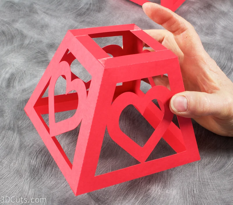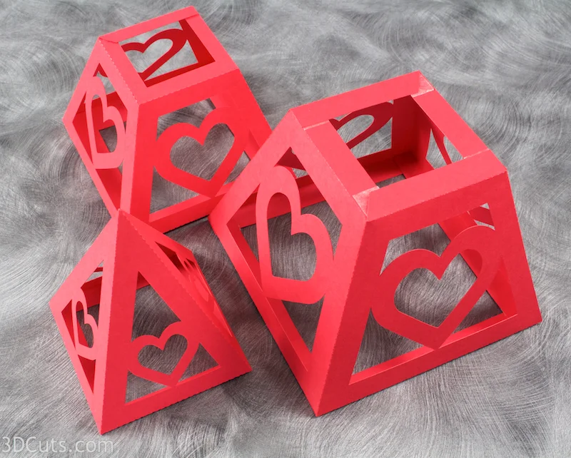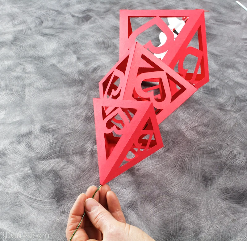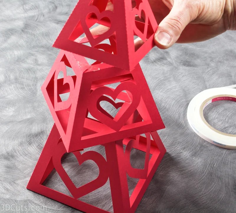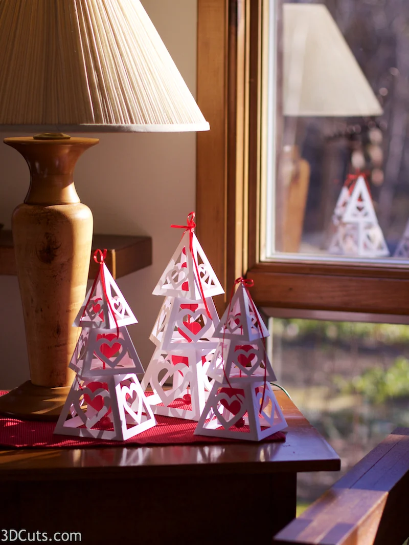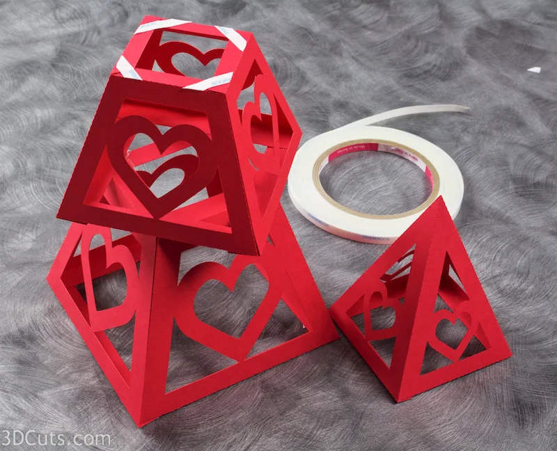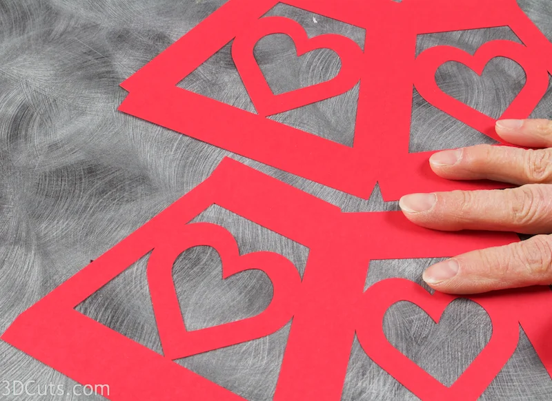 This tutorial is for the assembly of the Valentine Towers cutting files designed by Marji Roy of 3DCuts.com. It is a 3d sectional tower with heart cutouts surrounding an optional ribbon of hearts suspended in the center. This project is easy to assemble and a good beginner project for 3d paper work.