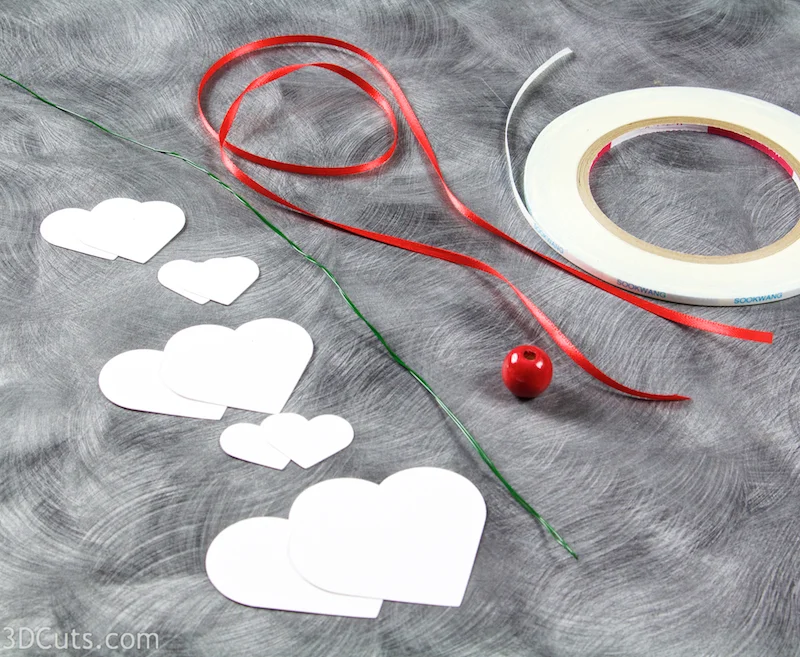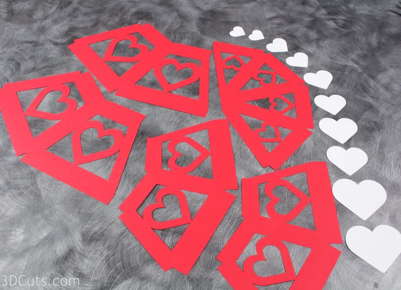 - To add this you will need: Paper hearts cut from card stock in a contrasting color. (Cutting files are included in the download.)