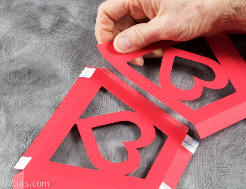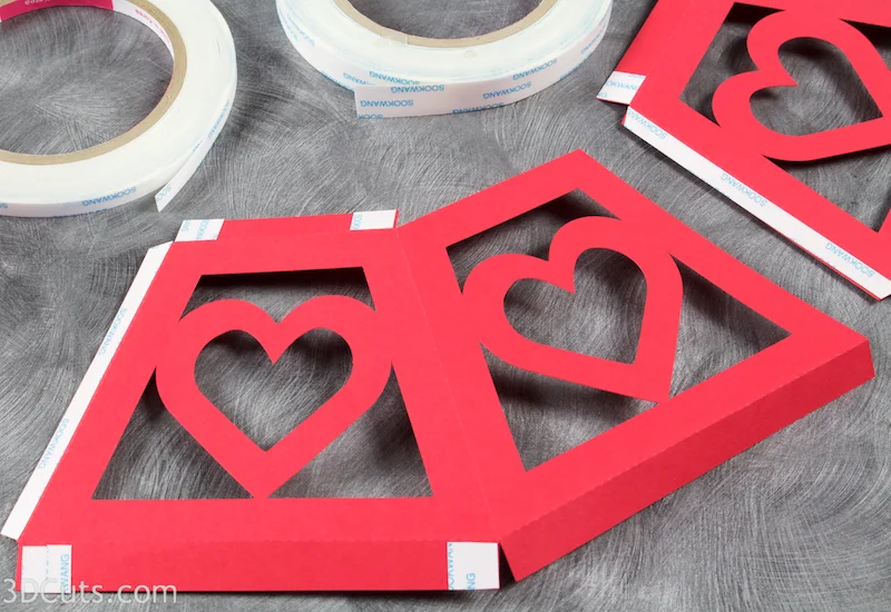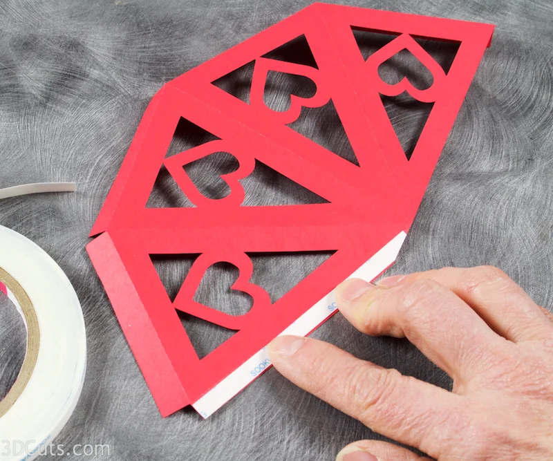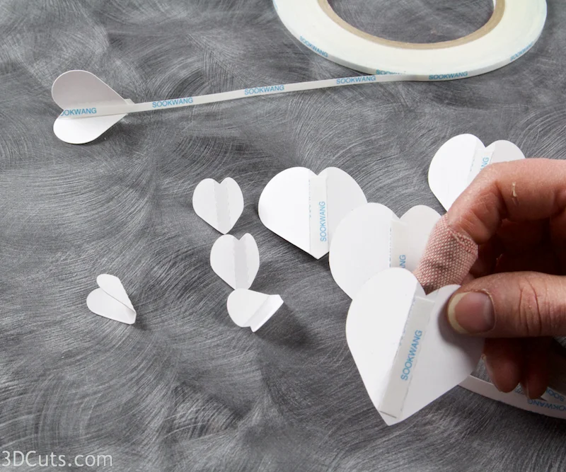 - Apply a length of Scor-Tape adhesive to the outside of the folded center on each of the hearts.