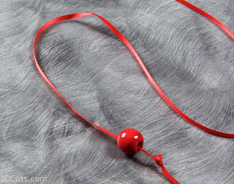 - Tie a big knot into one end of the ribbon and thread the bead on. Slide it down over the knot and add a dab of glue (I used hot glue) to hold the bead in place.