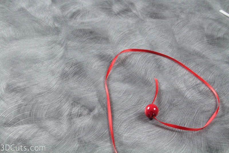 - I tied the ribbon off to another small bow and then applied a drop of hot glue to hold the center ribbon in place, again making sure the weight at the bottom was suspended just above the surface and the inside hearts were freely suspended.