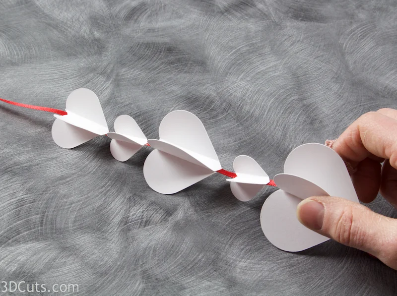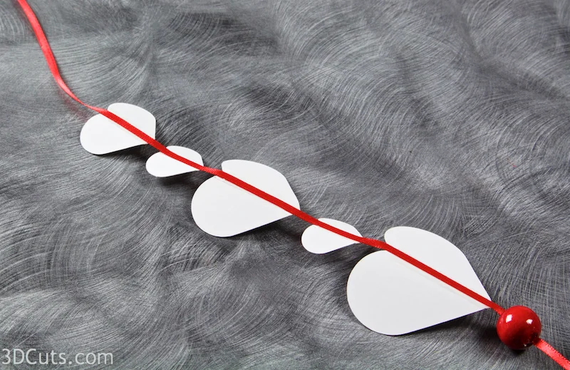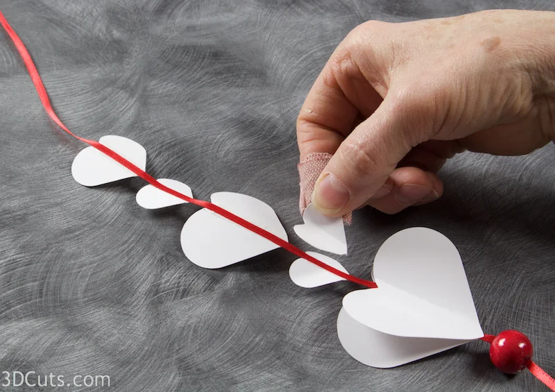 - Attach the matching second side of each heart on the opposite side of the ribbon. Do this for all the hearts on your ribbon.